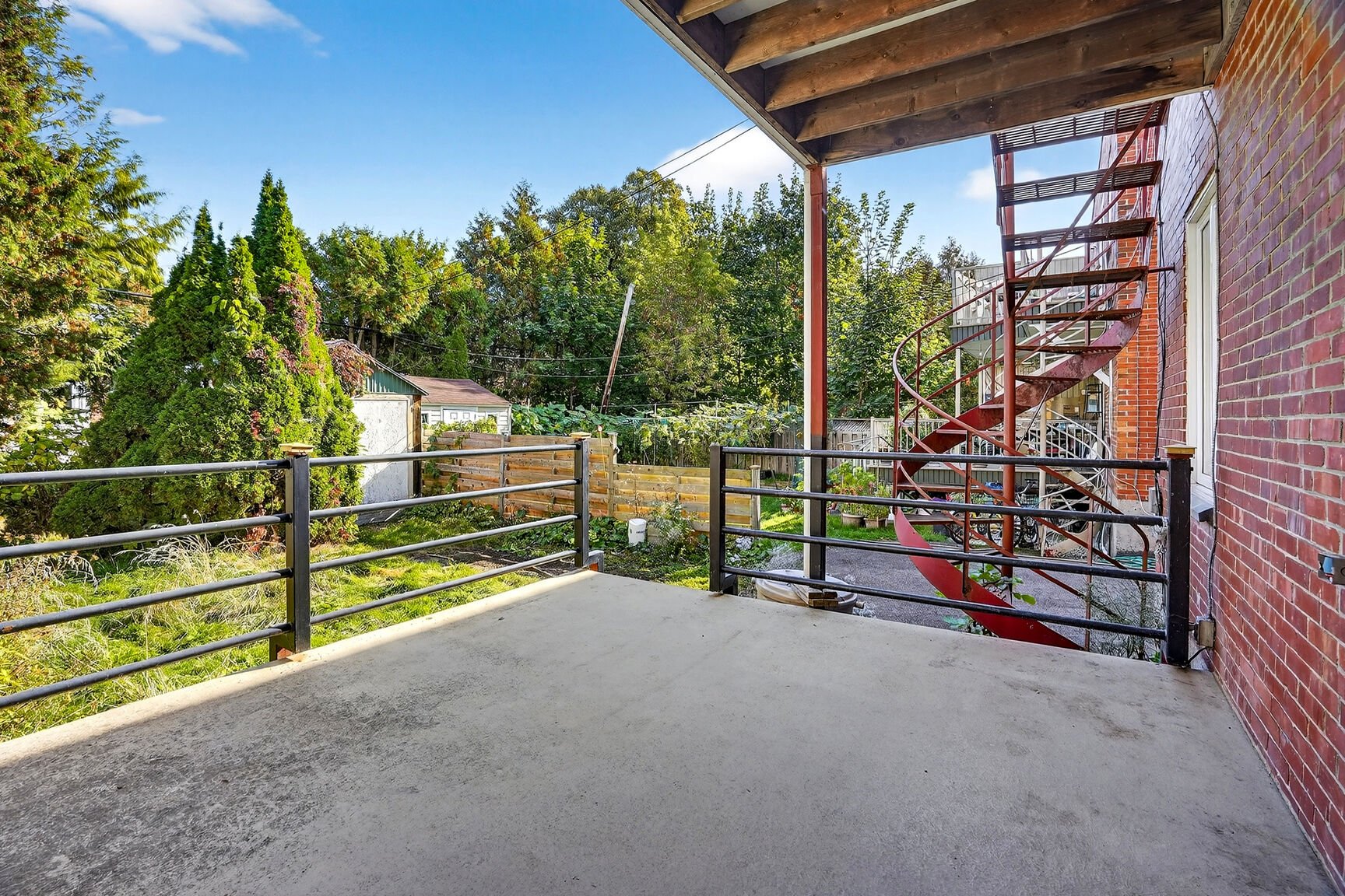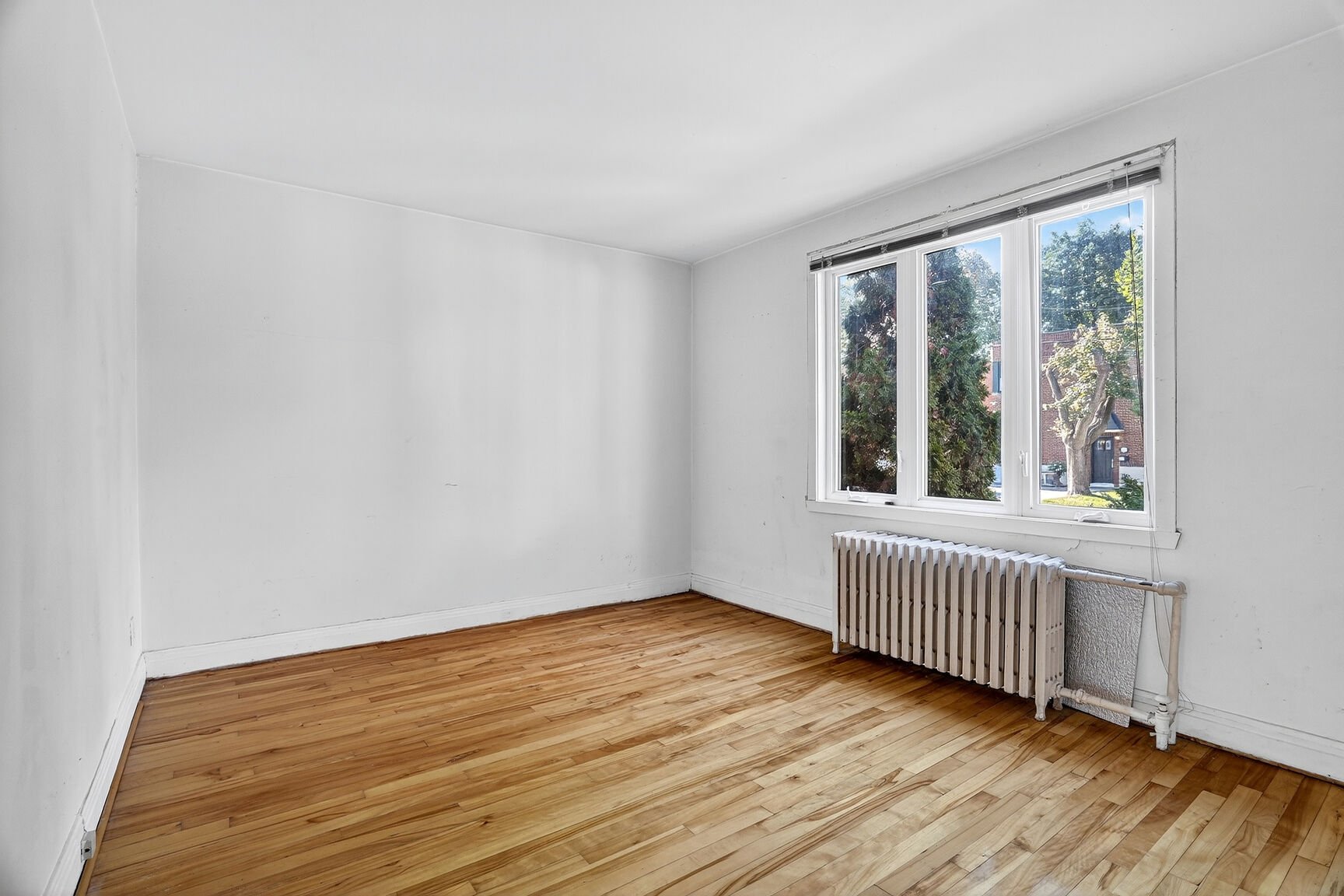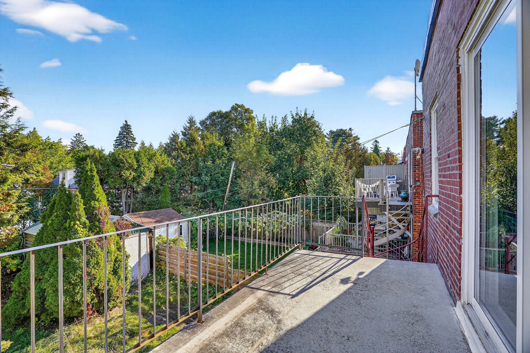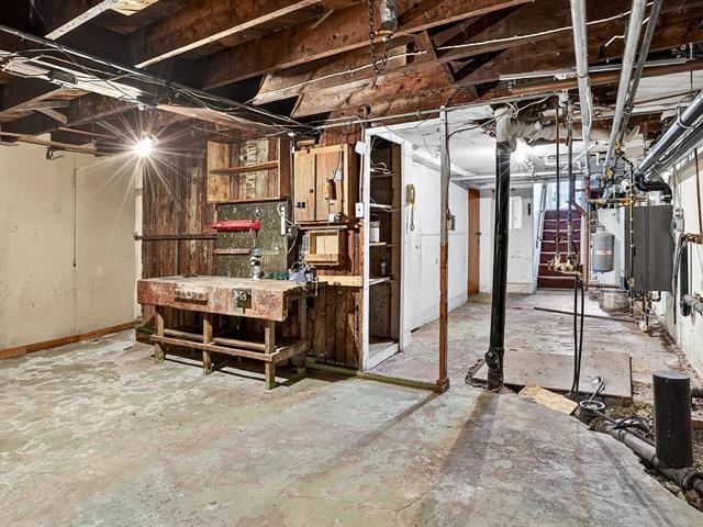 OCCUPATION DOUBLE. Duplex avec sous-sol. Dans chaque logement : 1 grande chambre et deux moyennes. Balcon-terrasse donnant sur la cour verdoyante et intime. Salon en facade côté ensoleillé (sud). Le plan permet des rénovations ergonomiques et de belles possibilités. Grand sous-sol, présentement rangement et atelier.