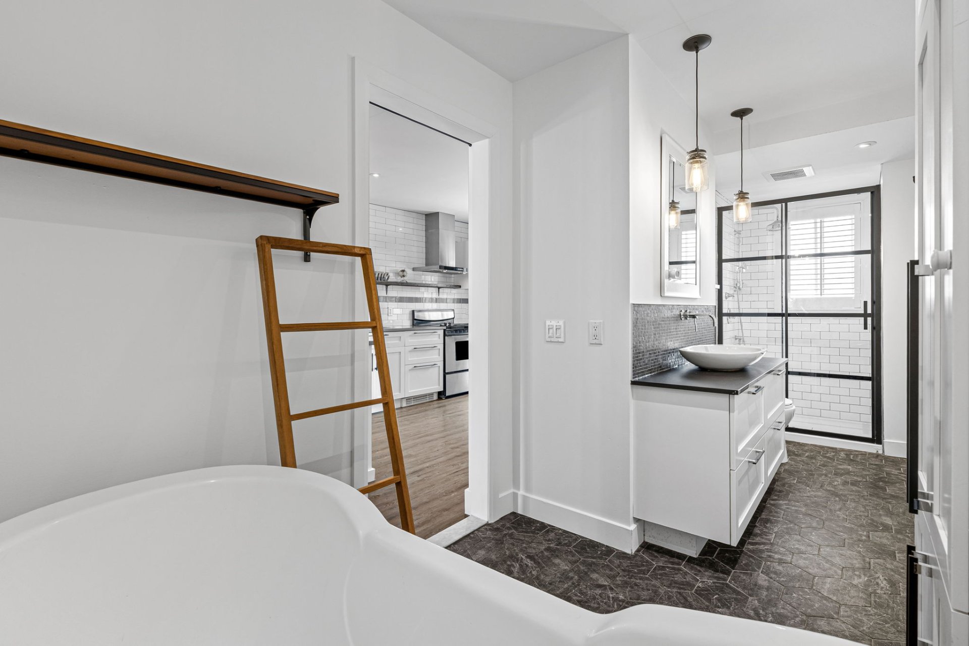 Grande salle de bains avec baignoire et douche indépendante