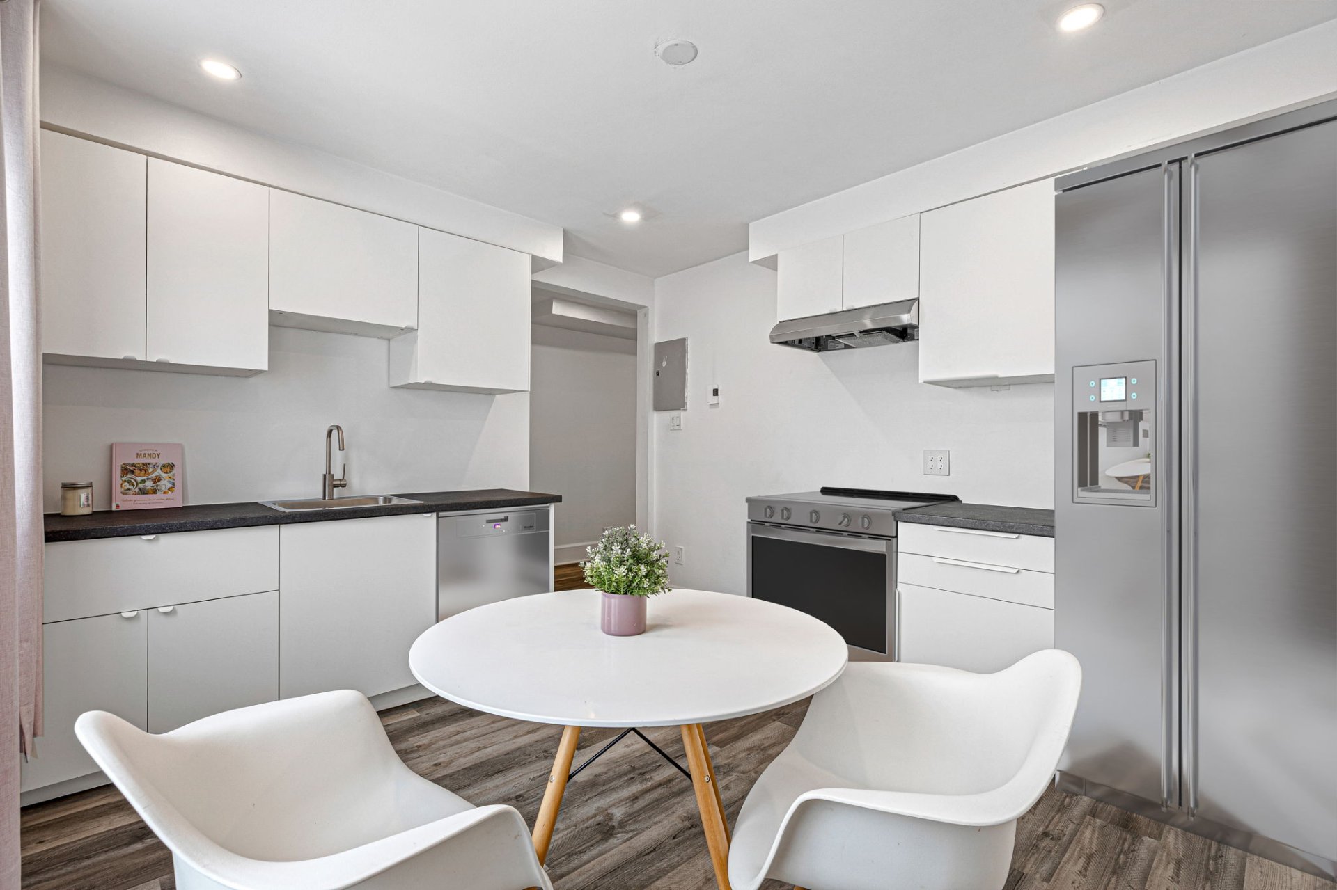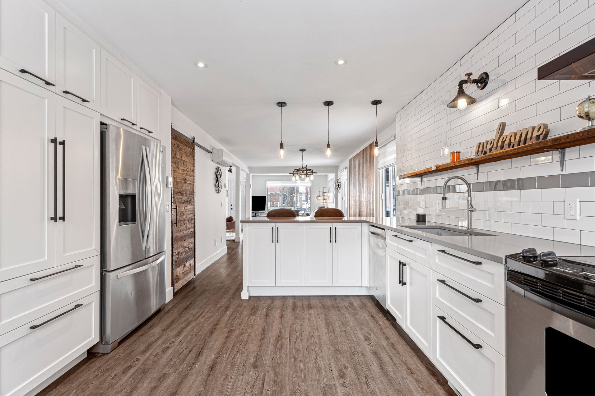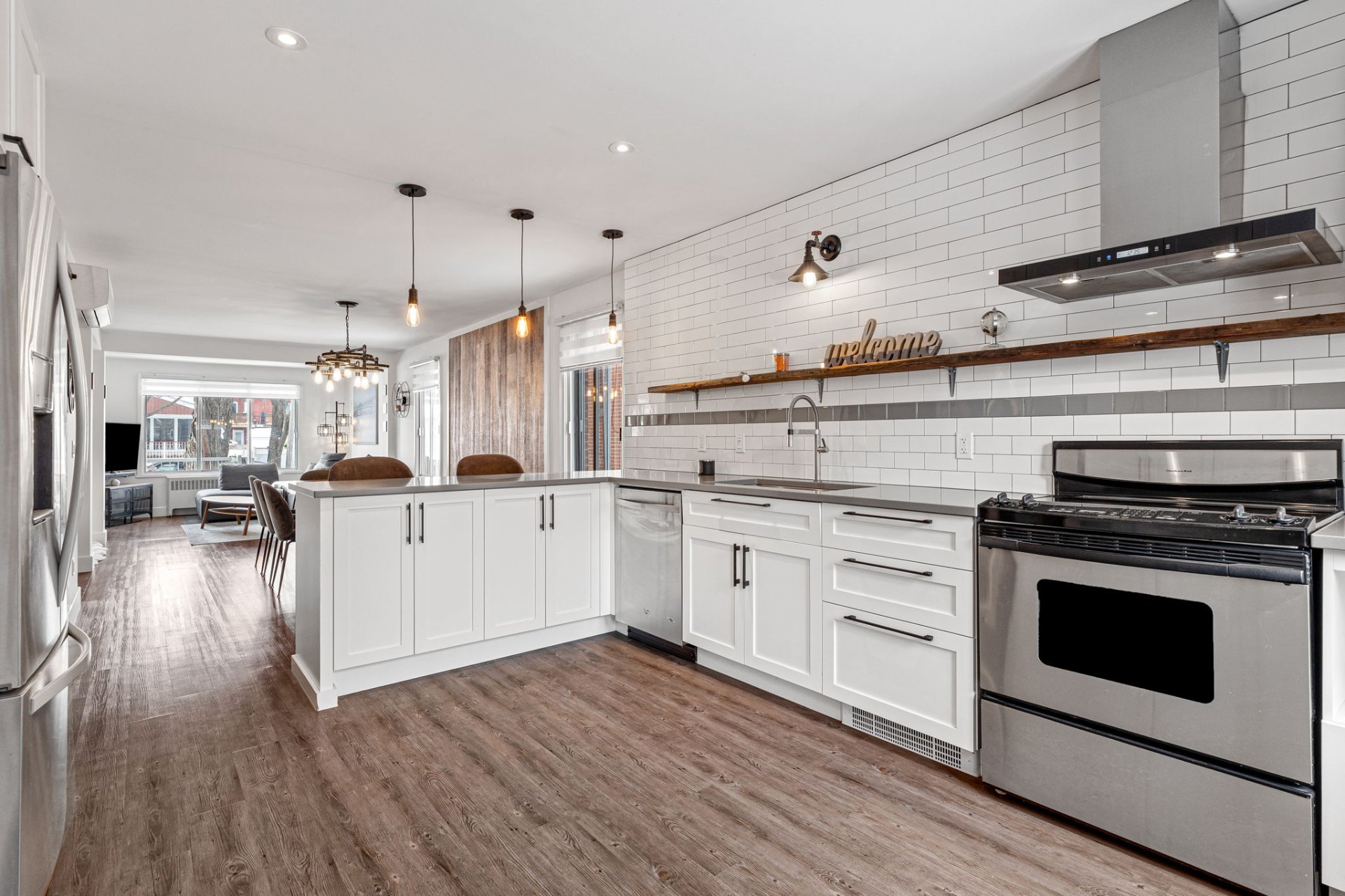 ouverte, baigné de lumière, avec une cuisine moderne